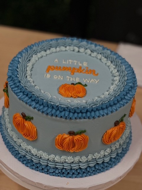 • Cake price varies by size and options. Cakes are available for store pick up only or local delivery by courier. Call the bakery for courier availability. Please be aware, if you order a House Favorite Flavor that has a colored buttercream (such as lemon buttercream or chocolate buttercream), we may have to substitute it for vanilla buttercream in order to make the cake the colors you request.