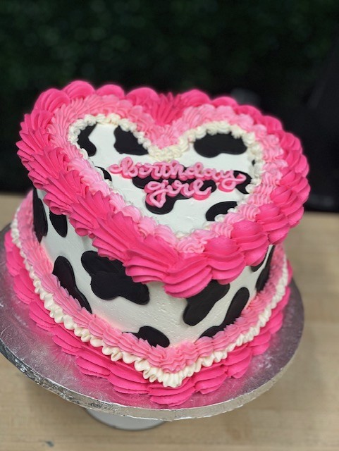 Cow print heart cake