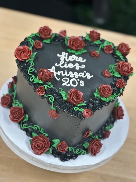 • Cake price varies by size and options. Cakes are available for store pick up only or local delivery by courier. Call the bakery for courier availability. Please be aware, if you order a House Favorite Flavor that has a colored buttercream (such as lemon buttercream or chocolate buttercream), we may have to substitute it for vanilla buttercream in order to make the cake the colors you request.
