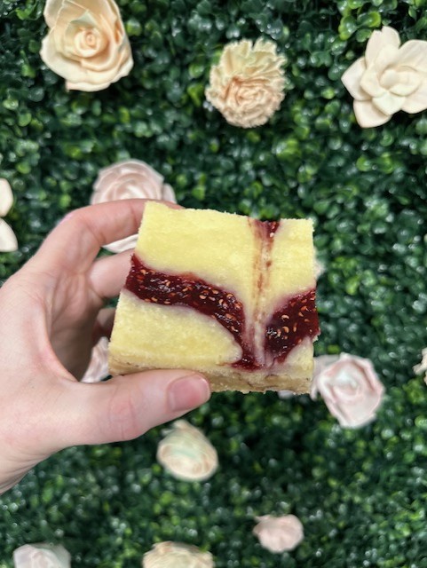 This includes 12 raspberry swirled cheesecake bars, with a pecan shortbread crust.
