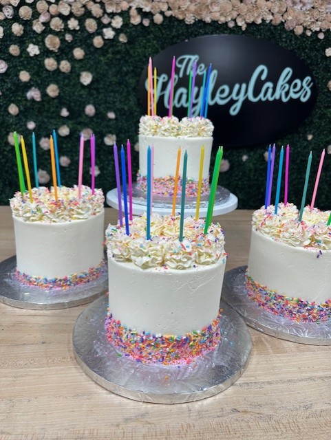 • Cake price varies by size and options. Cakes are available for store pick up only or local delivery by courier. Call the bakery for courier availability. Please be aware, if you order a House Favorite Flavor that has a colored buttercream (such as lemon buttercream or chocolate buttercream), we may have to substitute it for vanilla buttercream in order to make the cake the colors you request.