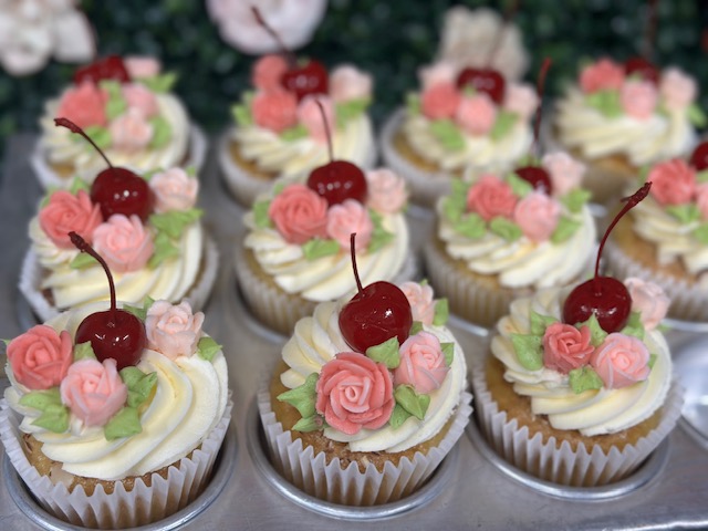 This includes a 6 pack of our almond wedding cake cupcakes, topped with homemade almond buttercream, buttercream roses, and a sweet cherry on top for your Valentine <3