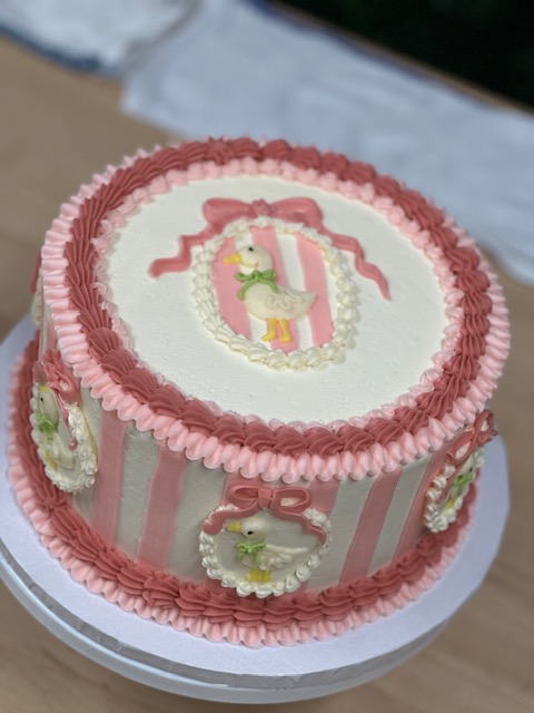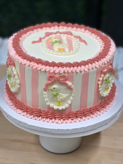 • Cake price varies by size and options. Cakes are available for store pick up only or local delivery by courier. Call the bakery for courier availability. Please be aware, if you order a House Favorite Flavor that has a colored buttercream (such as lemon buttercream or chocolate buttercream), we may have to substitute it for vanilla buttercream in order to make the cake the colors you request.